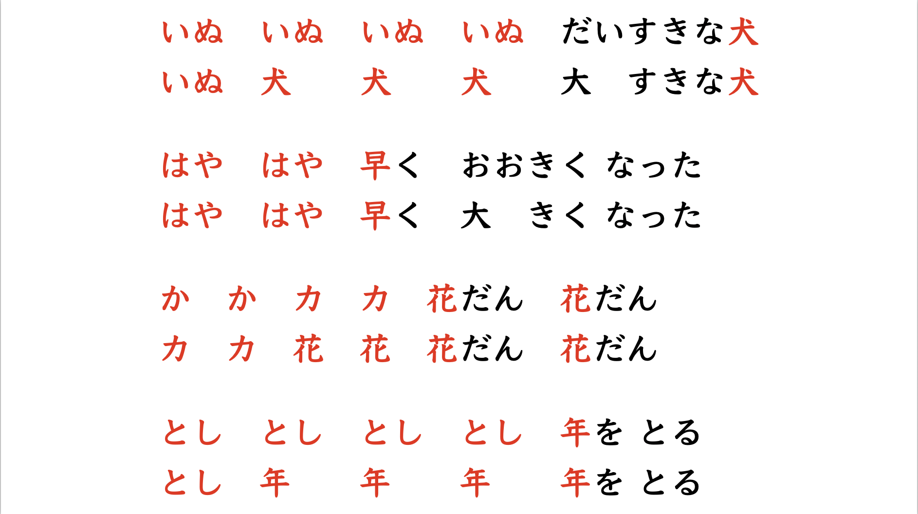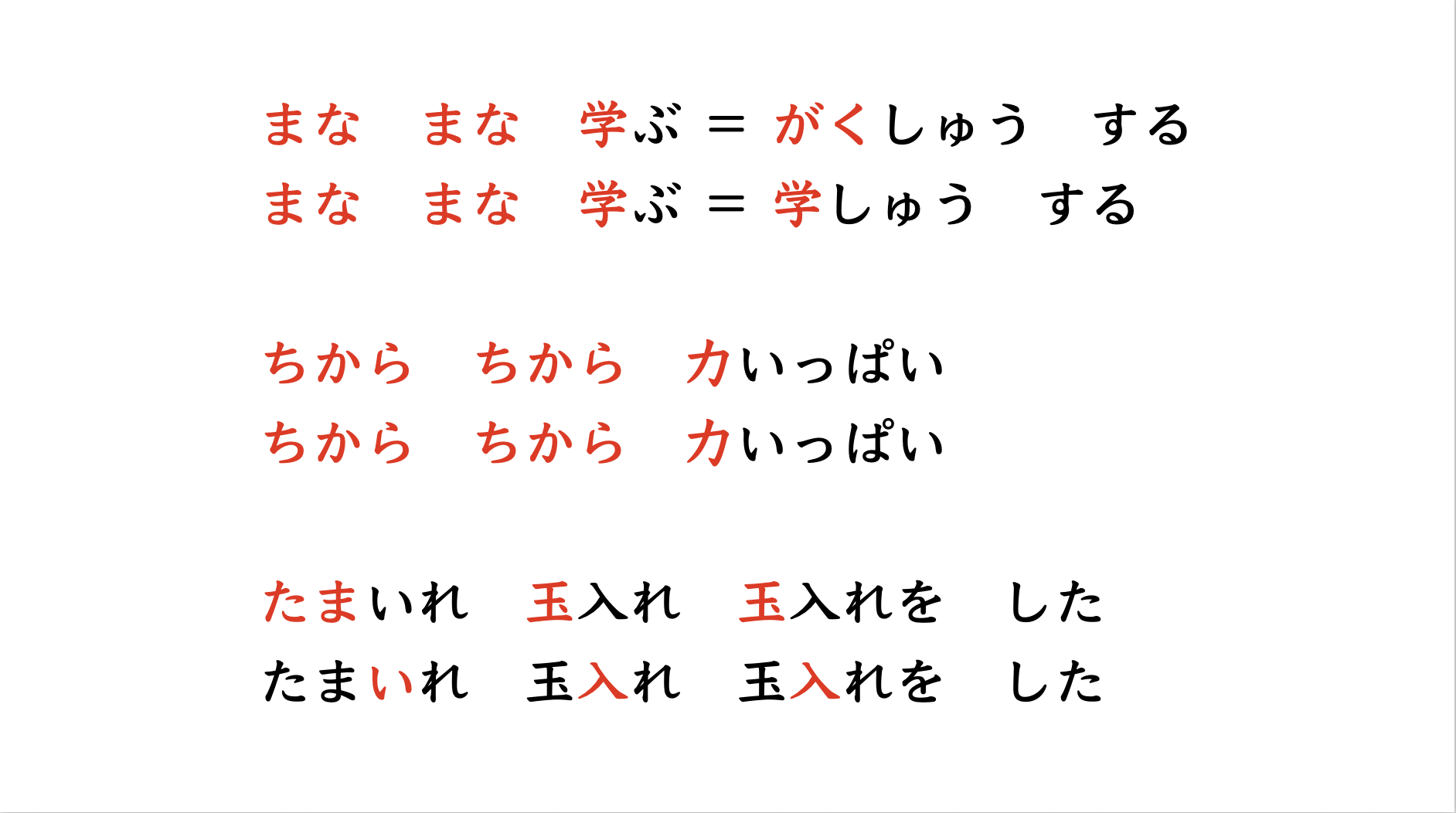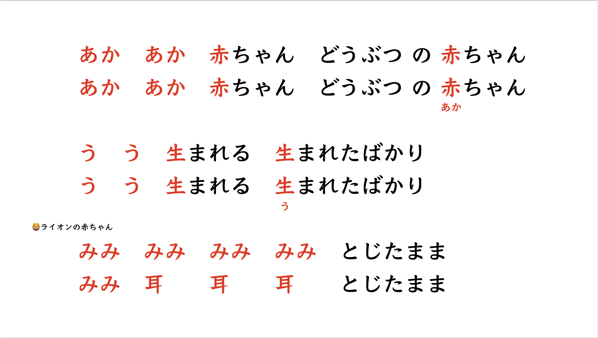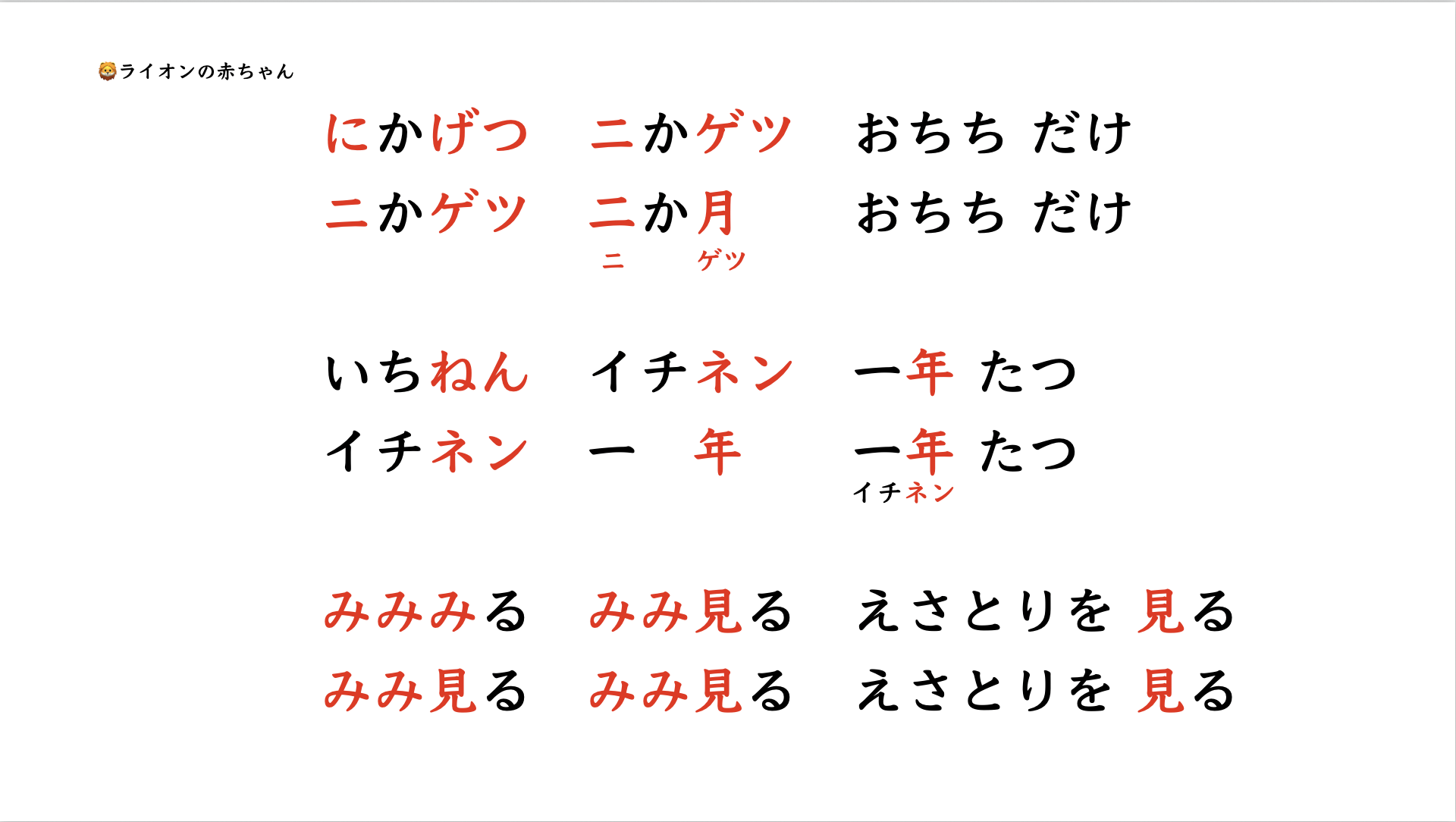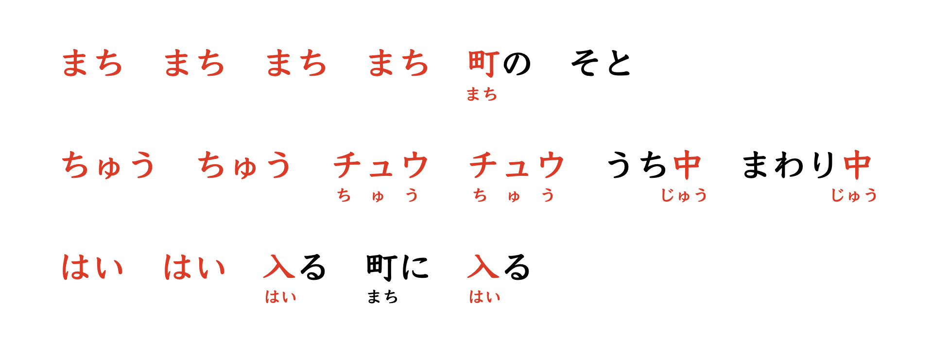 このページでは学習者の負担を軽減するため、全ての文に音訓読みの両方は入れていません(一部は入っています)。