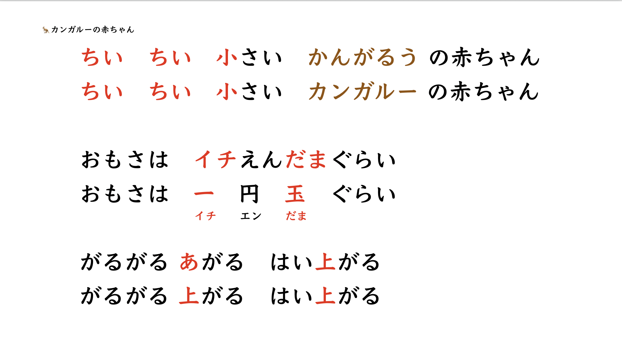 ★1年生で習う漢字でひらがなになっているところは敢えて漢字にしています。いずれ習うので、できれば読めるようにしておくと後々楽になるでしょう。