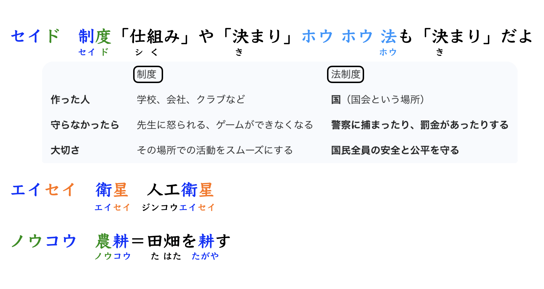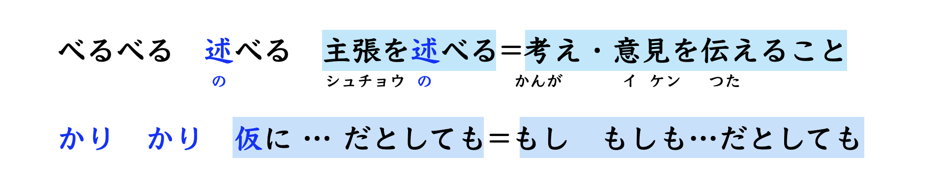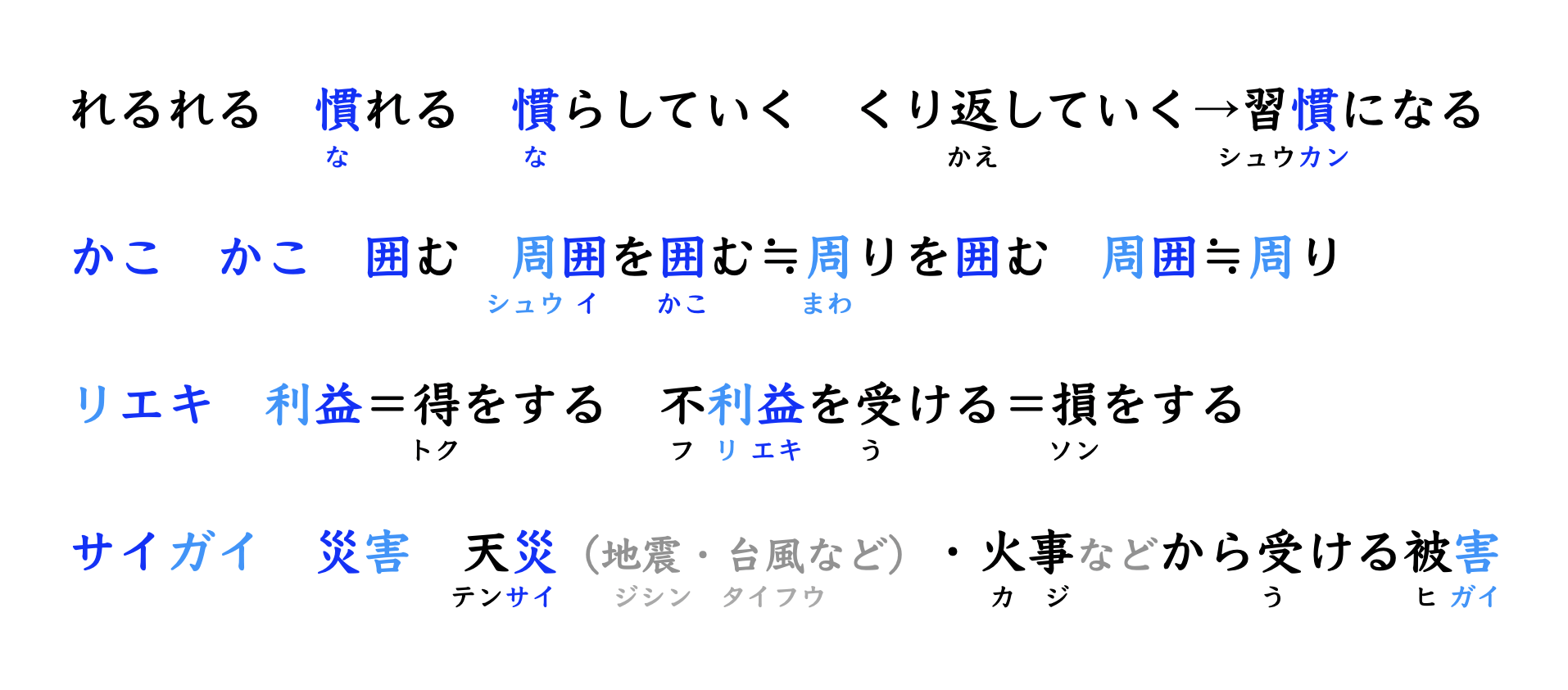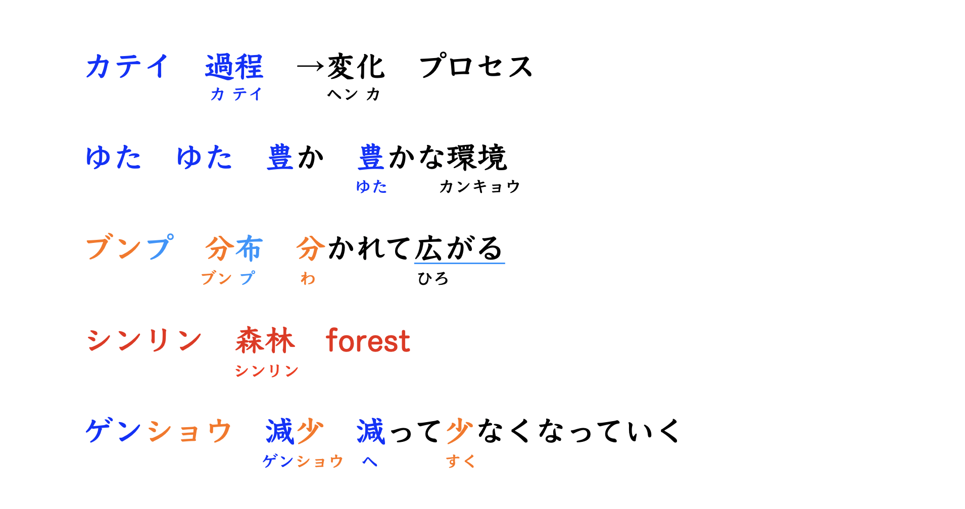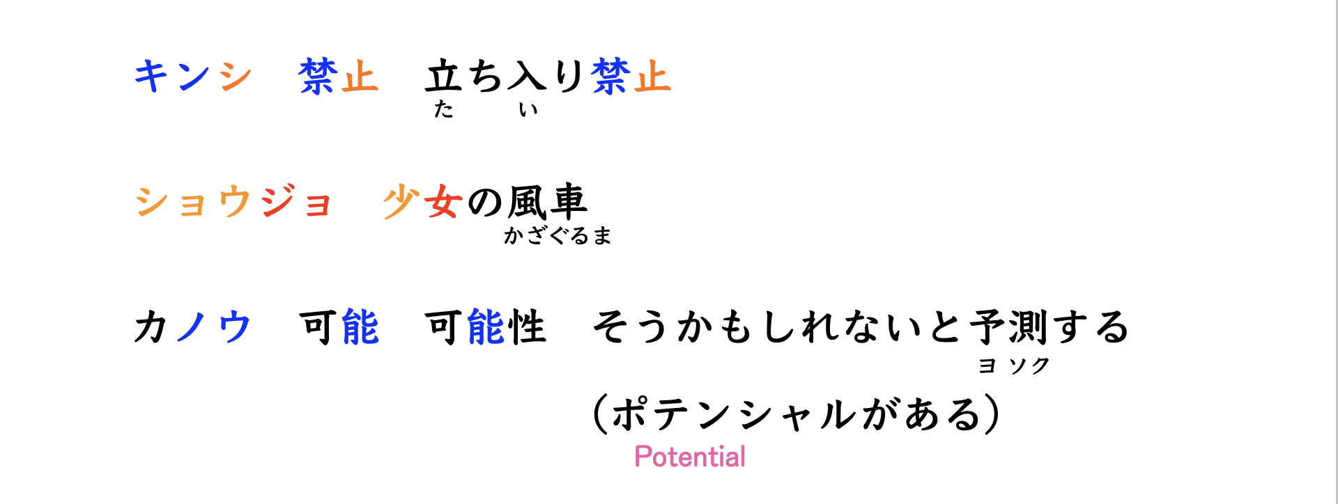 このページでは学習者の負担を軽減するため、全ての文に音訓読みの両方は入れていません(一部は入っています)。