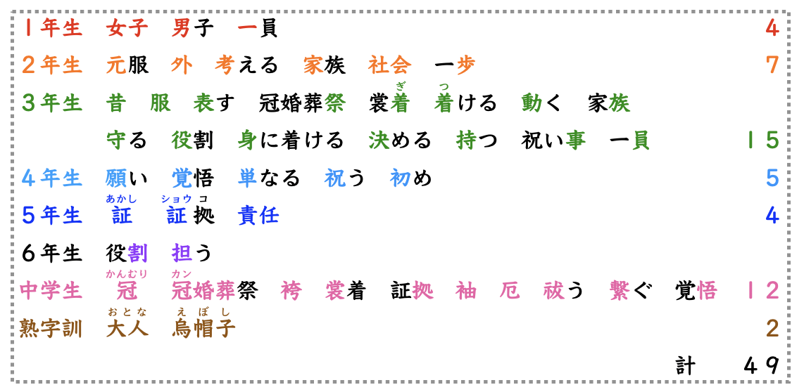 ここでは49通りの漢字の読みが学べます。
