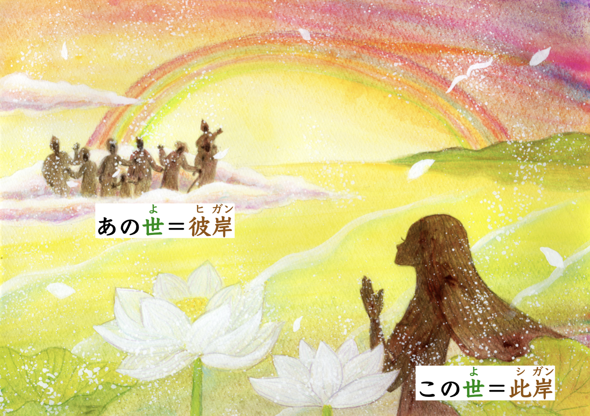 私たちが住む世界「此岸(しがん)」は、東のほうにあると考えられています。