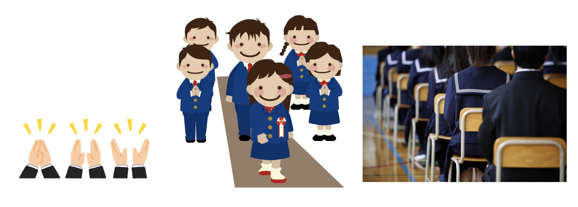 むか むか 迎える 拍手で迎える 先生、保護者、在校生