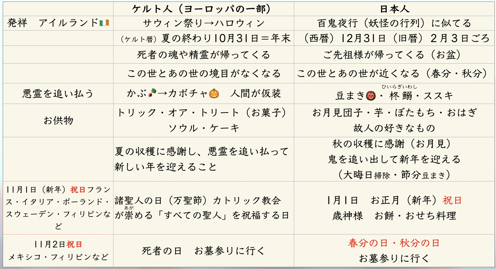 最後に、ハロウィンと日本の行事の共通点をまとめたので